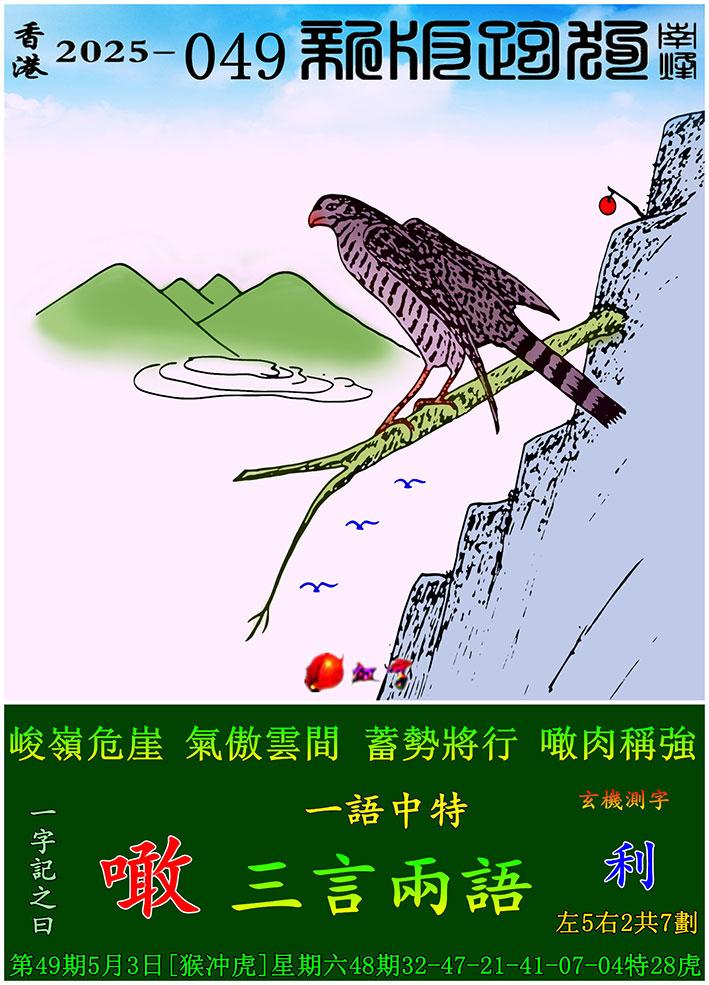 049期新版跑狗一字記之曰:【噉】 玄機測字:【利】