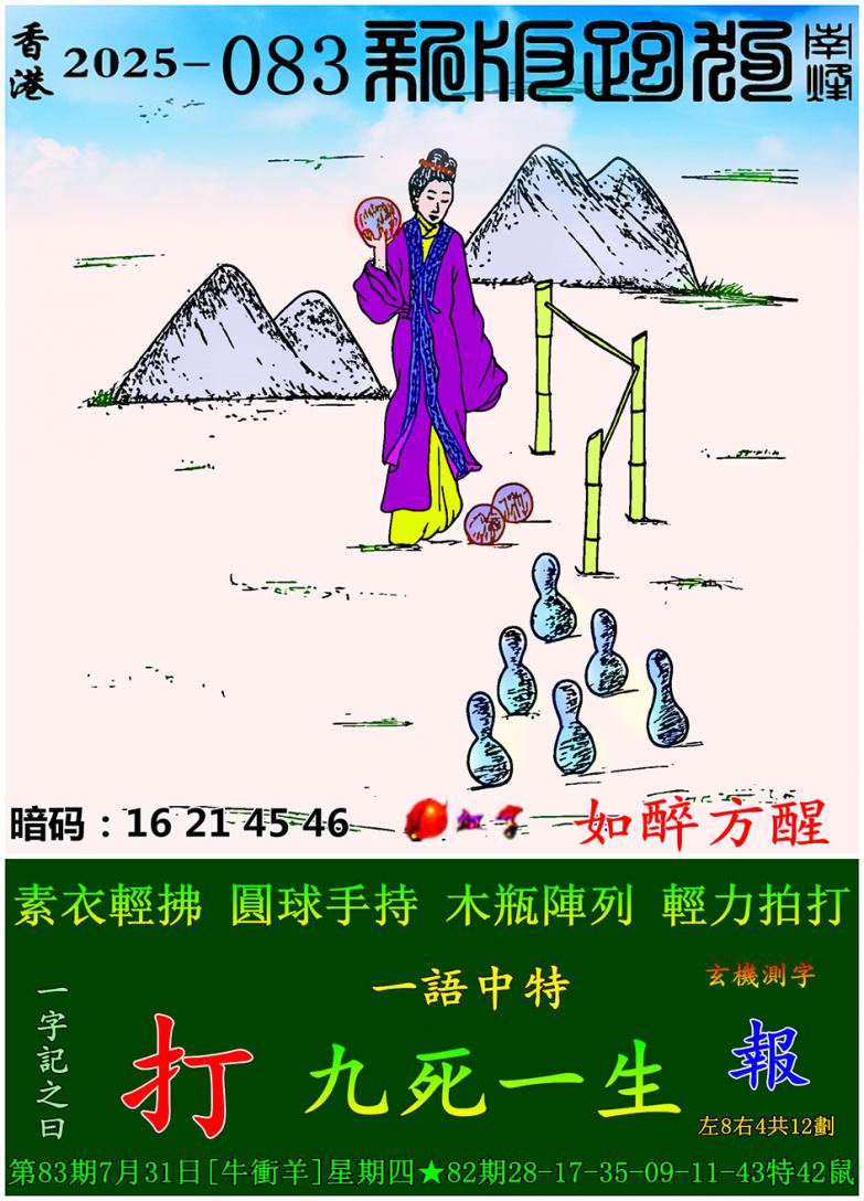 083期新版跑狗一字記之曰:【打】玄機測字:《報》 一語中特:九死一生