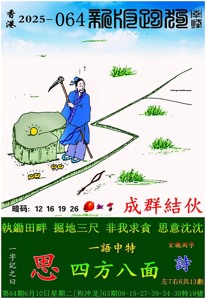 064期新版跑狗一字記之曰:【思】玄機測字:《詩》 一語中特:四方八面