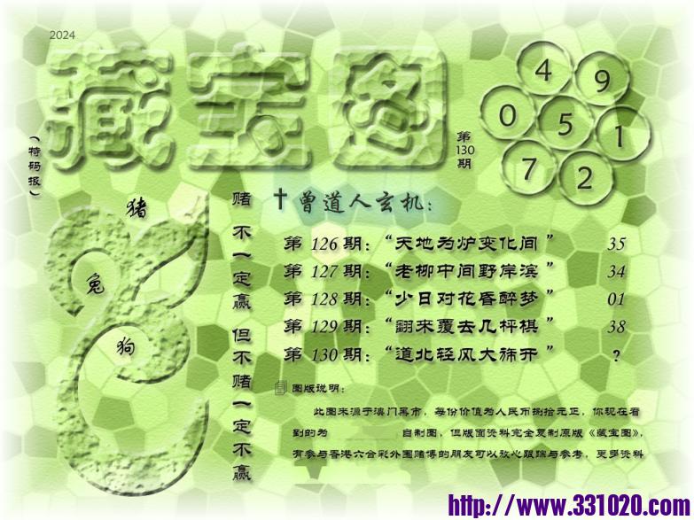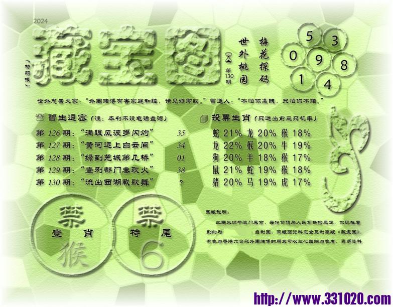 130期藏寶圖 新:道北轻风旆大开 老:流出西湖载歌舞 禁:猴 禁:6尾 玄機字:《贾》